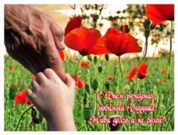 У тебя все было: Радости и беды, Сладкий мед пчелиный, Горькая полынь. А теперь, когда ты Записался в деды, Потрудись на внука, Лет десяток скинь? Несу Вам, деда, радостную весть, Вы человек и мужества, и чести, Безмерно горд, что у меня Вы есть! Не терпите Вы лжи и лести! Пусть время не изменит доброты, Чтобы всегда любили мы друг друга, Пусть все сегодня лишь за Вас тосты, И свет в глазах от солнечного круга!